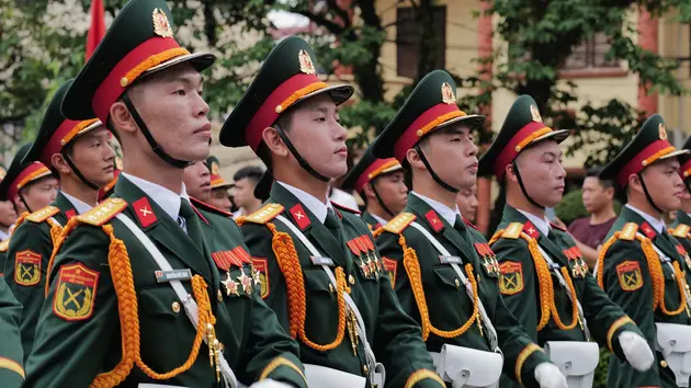 Các chiến sĩ tham gia diễu binh dịp kỷ niệm 70 năm chiến thắng Điện Biên Phủ - Ảnh: Tuoitre.online