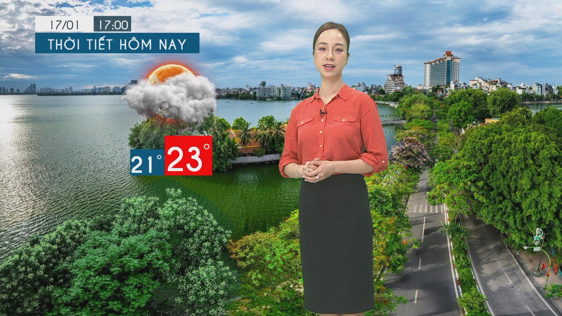 Về gần trưa, mật độ mây mỏng dần, nắng lên, nền nhiệt tăng nhanh lên mức 31-32 độ. Sang đầu giờ chiều, nền nhiệt tiếp tục tăng lên mức cao nhất là 33 độ, có nơi 34 độ. Tuy nhiên trong khoảng thời gian này, mây dày trở lại, mưa dông có thể bất chợt xuất hiện, cảm giác oi bức, ngột ngạt; độ ẩm 62-70%.
