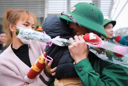 Trước giây phút lên đường nhập ngũ, nhiều tân binh không kìm được cảm xúc, nghẹn ngào chia tay người thân tạo nên những hình ảnh đầy xúc động.