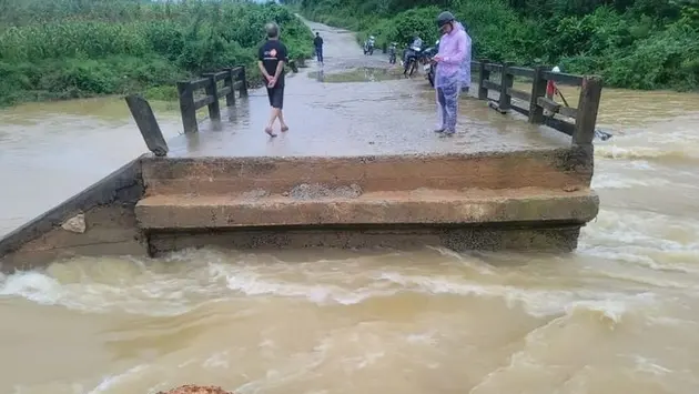 Thanh Hoá: Nước lũ cuốn trôi một đoạn cầu Bến Nhạ