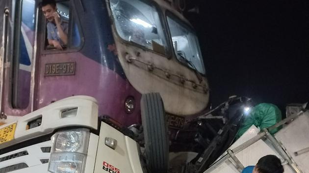 Va chạm với tàu hỏa, ô tô tải nằm ngang đường ray